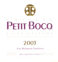 CHÂTEAU PETIT BOCQ 2003 A.O.C. Saint Estephe - Cru Bourgeois Supérieur
