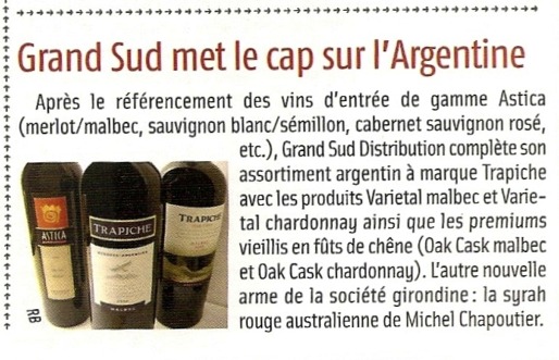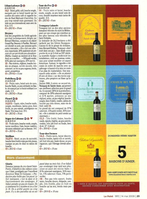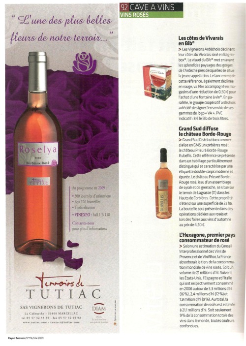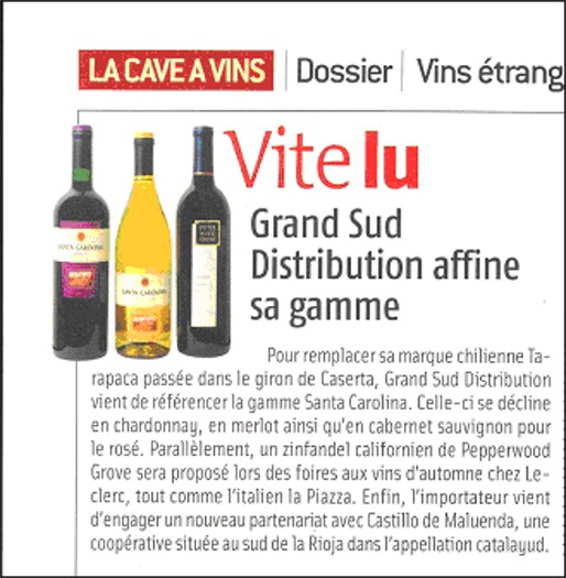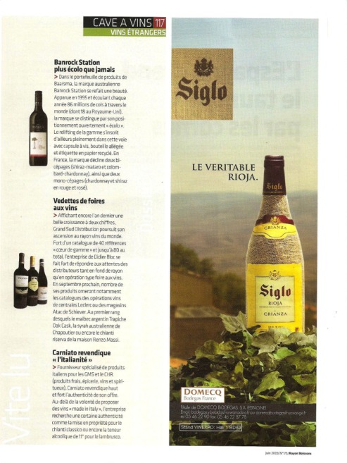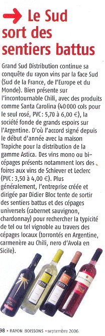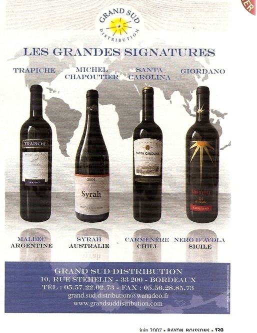 Rayon Boissons Juin 2009 Mai 2009 Juin 2007 Septembre 2006 N°120 Juin 2004 Tarapaca, Santa Carolina, Chili Pepperwood Grove, Californie La Piazza, Italie